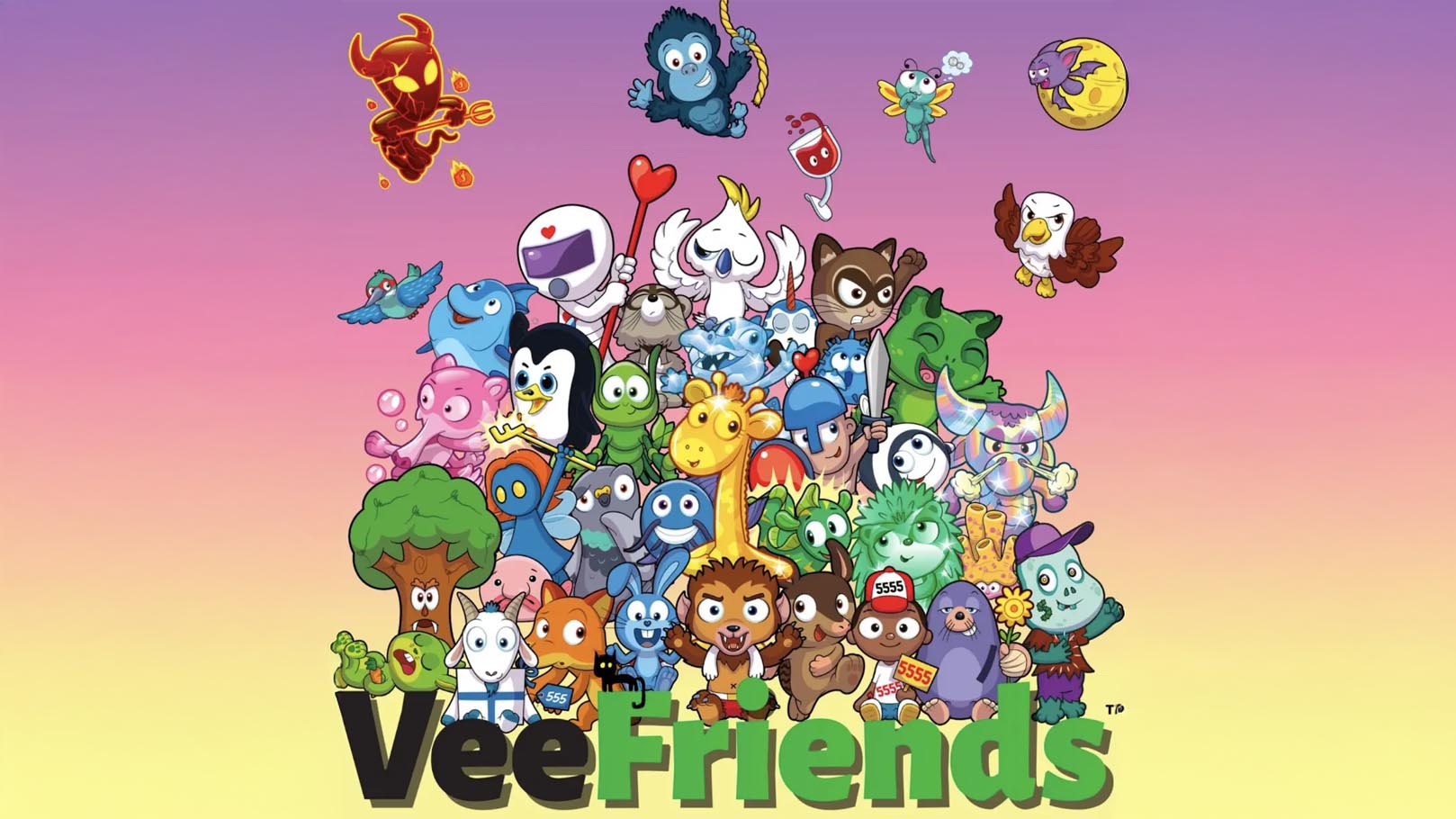 This vibrant image showcases some of the 251 unique characters from the Veefriends universe, each representing a core value or principle such as empathy, kindness, patience, and accountability, such as Practical Peacock, Accountable Ant, Empathy Elephant, and Patient Pig.